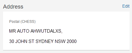 6. Your CHESS registration details are listed under Postal (CHESS). |