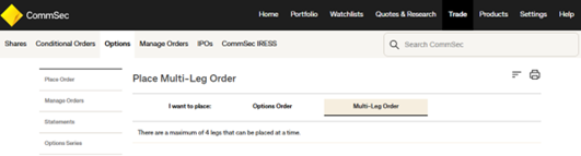 1. After logging in, click on Trading > Options > Multi-Leg Order (Note: you need an ETO account to be able to access this).