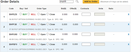 4. When you have decided the Options you would like to receive a quote on, enter the Options code and click Add to Order. It should appear in the order pad as below.