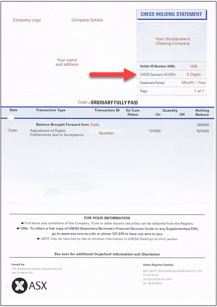 Check your most recent CHESS statement that includes the shares you’re dealing with. You’ll find the PID in the top-right corner of the statement: