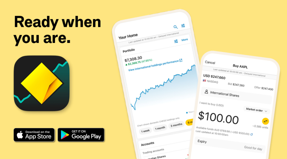 The CommSec Notice Investor and Commonwealth Direct Investment Account (CDIA) are issued by the Commonwealth Bank of Australia ABN 48 123 123 124 AFSL 234945. These products are administered by Commonwealth Securities Limited ABN 60 067 254 399 AFSL 238814 (CommSec), a wholly owned but non-guaranteed subsidiary of the Commonwealth Bank of Australia. You can view the CommSec Notice Investor Terms and Conditions, Share Trading Terms and Conditions, Best Execution Statement, International Shares Terms and Conditions and Financial Services Guide on the CommSec website and the CommBank Transaction, Savings and Investment Account (CDIA) on the CommBank website and should consider them before making any decision about these products and services. The CommSec Notice Investor and CDIA TMD’s can be located on the CommBank website. Investing carries risk.