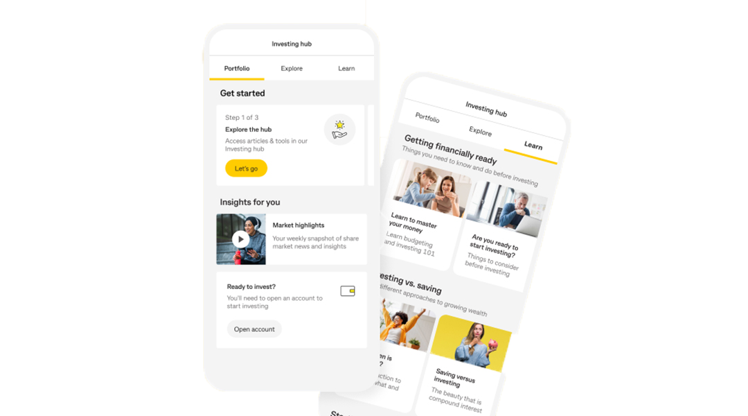 Simply log in to the CommBank app and tap the Investing hub tile.