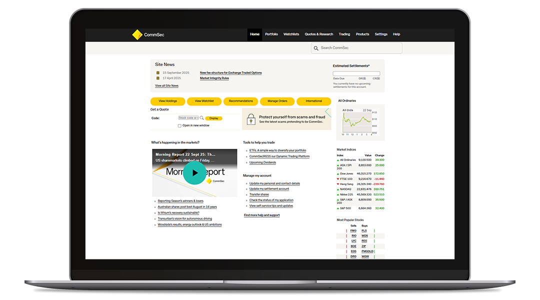 We’ve given CommSec a visual refresh – starting with our public website and now extending to your logged in experience. You’ll see a clean, modern look. Same functionality, just a bit more flare.