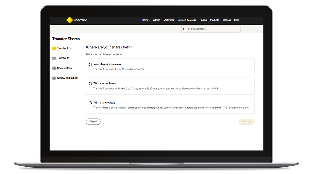 Consolidate your Aussie share portfolio into CommSec with our Digital Share Transfer tool - quick and easy, for new and existing customers.
