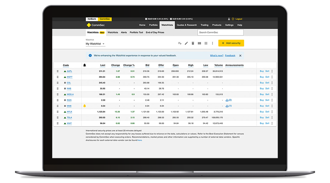Our upgraded Watchlists lets you follow Aussie and global stocks, customise your views, get live prices, and manage up to 200 stocks, all in one place.