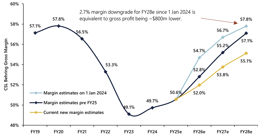 Estimates on 1 Jan 2024 for Behring gross profit were ~US$800m higher than where they are now at in mid Sep 2025. There is still significant execution required to return to a higher gross margin in the core blood plasma business.